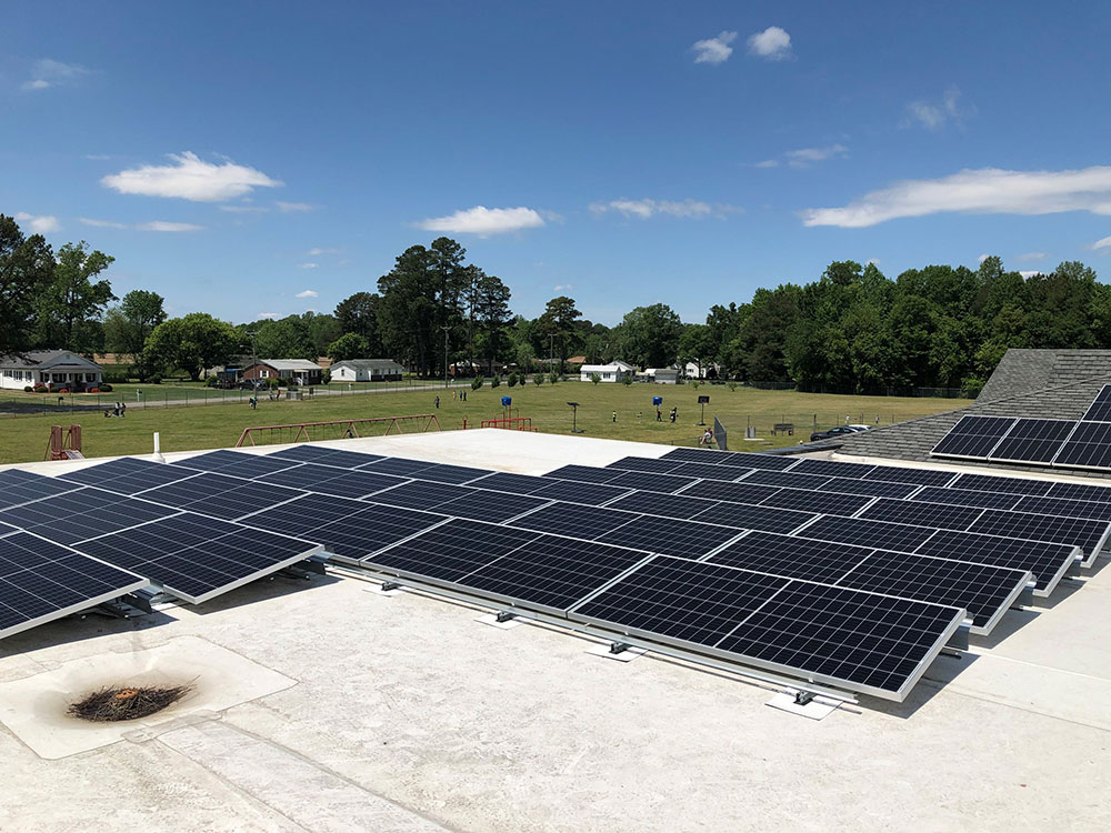The arrays are on the rooftops of Carrollton Elementary School, Carrsville Elementary School, GD Tyler Middle School, Smithfield Main, Windsor Elementary School and Windsor High School.